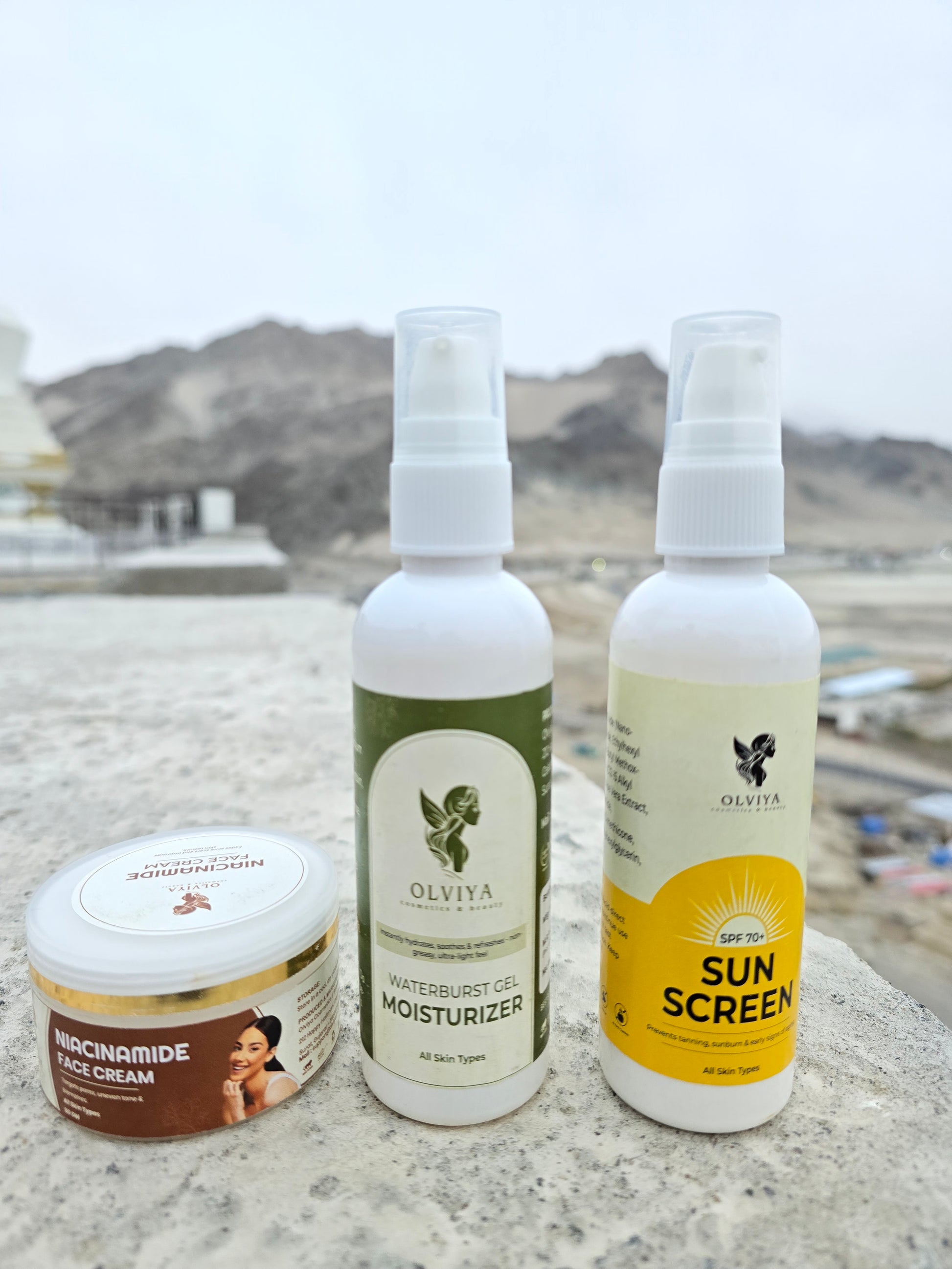 Olviya - Cosmetics & Beauty - Niacinamide Cream 50gm, Moisturizer Gel 100ml & Sunscreen 100ml